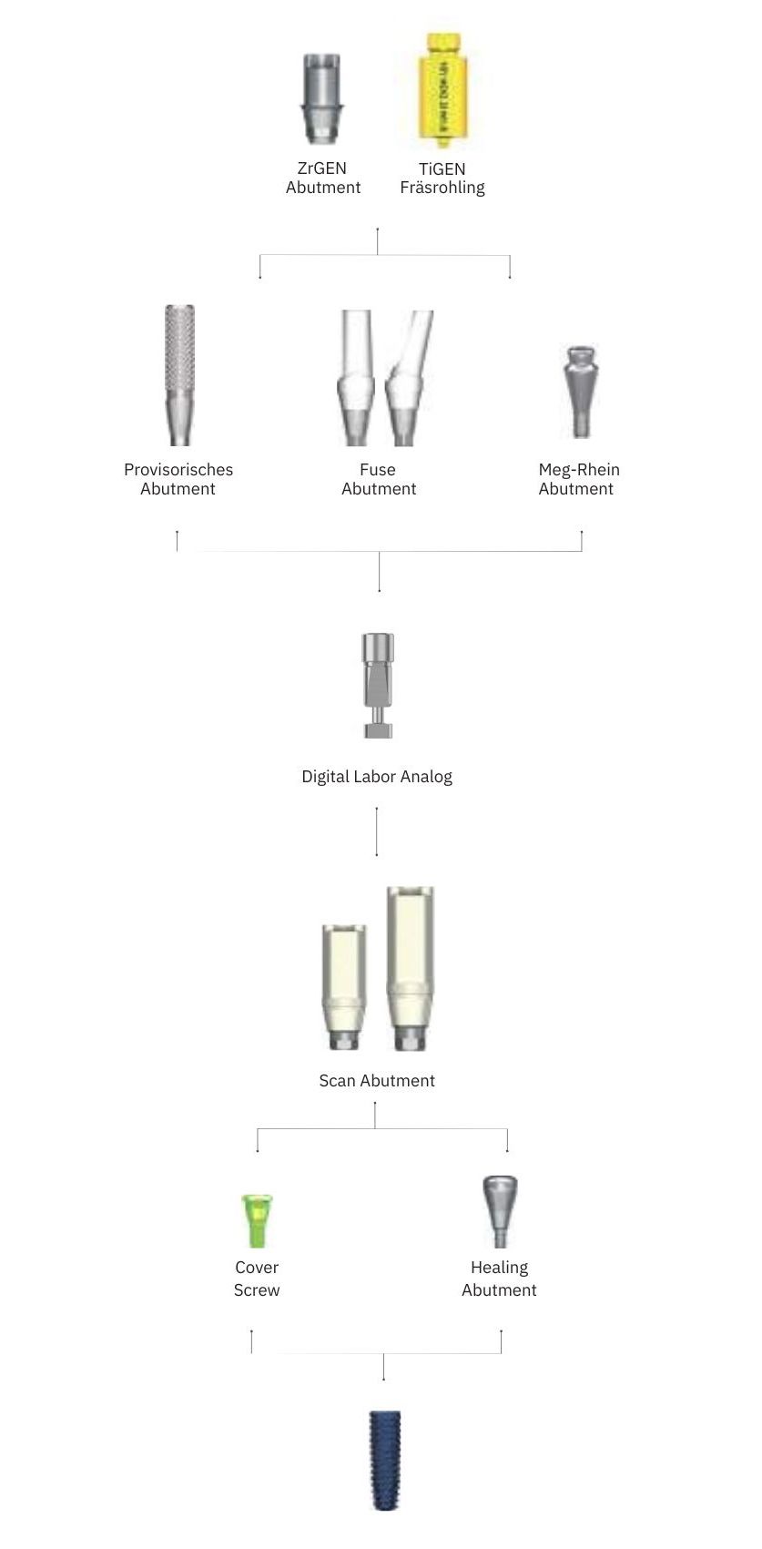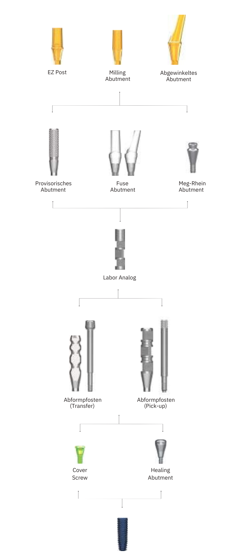 Größere Fixture in reduzierten Graten. Das konische Profil ermöglicht es, die anatomischen Eigenschaften der Knochenkämme optimal zu nutzen.